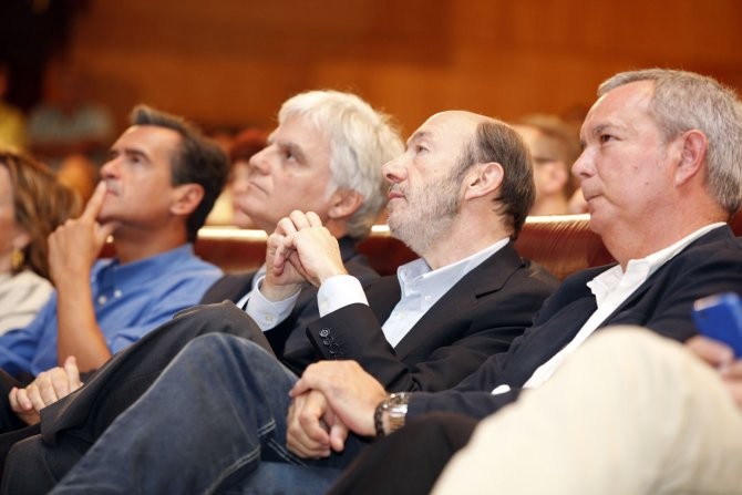 De este expuso una de sus propuestas para crear puestos de trabajo. "Subvencionar la contratación en vez del despido, como el PP". Rubalcaba explicó que, de ser elegido presidente del Gobierno en las elecciones del 20 de noviembre, aprobará una medida por la que el Ejecutivo estatal "correrá con el pago de las cuotas a la Seguridad Social".