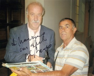 Nuestro Mariano más intrépido e incondicional explorador de áreas reservadas a famosos no pasó por alto la conferencia que Vicente del Bosque. El seleccionador nacional de fútbol ofreció el pasado lunes en Gran Canaria en el marco de las Jornadas Internacionales de Actualización y Reciclaje para Entrenadores que se desarrollan en la capital desde el pasado 24 de octubre. Este ciclo de conferencias y encuentros prácticos ha sido organizado conjuntamente por el Comité y la Escuela de Entrenadores de la Federación Interinsular de Fútbol de Las Palmas y se encuadra dentro del calendario de actividades programado con motivo del 80 aniversario de la fundación del máximo organismo regulador de las competiciones futbolísticas de la provincia de Las Palmas. Nuestro vecino más internacional tuvo la oportunidad de añadir una foto más a su colección con firma y dedicatoria incluida. Todavía no nos ha contado si mantuvo una breve conversación con el seleccionador sobre su vecino, David Silva, quien atraviesa uno de sus mejores momentos esta temporada. Al acto también acudieron autoridades del sur de la isla pero esta vez Mariano es la noticia.