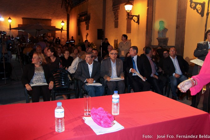 Y para completar el cuadro histórico, la “A.F. Entreamigos”, dirigida por el gran folklorista Suso Santana Marrero, ofreció una actuación musical acompañada de un nutrido cuerpo de baile, todos ellos ataviados con trajes de fiesta usados en las Islas Canarias en los siglos pasados. A mi entender, y aprovechando que el Guiniguada pasa por el Pérez Galdós, sólo faltó una pareja vestida con el traje de Néstor, una de las más bellas recreaciones y síntesis de la vestimenta canaria. Pero eso, como todo, es cuestión de gustos y sensibilidades. Hay quien prefiere imitaciones de trajes regionales peninsulares y otros no le hacemos ascos a la gran creación de uno de nuestros más insignes artistas que ha dado Gran Canaria a la cultura española, el injustamente postergado Néstor Martín-Fernández de la Torre.