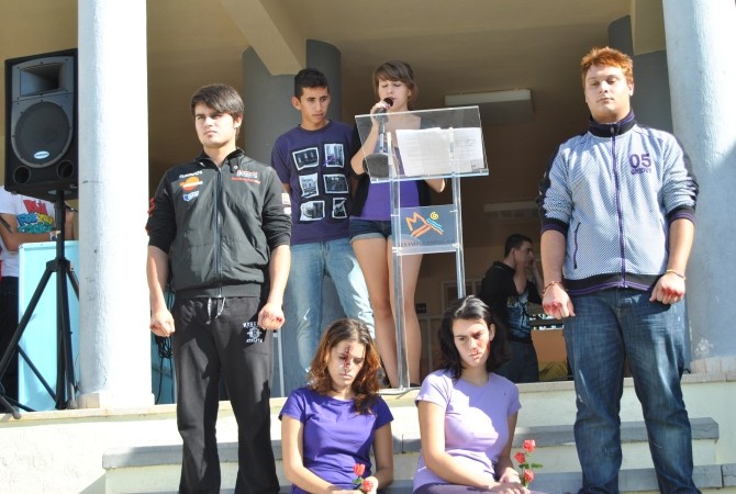 Los actos programados por los propios alumnos, después de trabajar este tema en sus respectivas aulas, incluyó también la lectura de un manifiesto elaborado por los estudiantes contra los casos de violencia física y psicológica que ejercen los hombres contra las mujeres para hacer prevalecer su opinión y su poder.