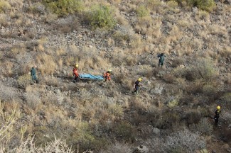 El helicóptero de rescate del GES aterrizó en el barranco y evacuó al afectado al hospital, acompañado durante el viaje por el médico y el enfermero del SUC que previamente lo habían estabilizado y donde presentó politraumatismos de carácter menos grave.