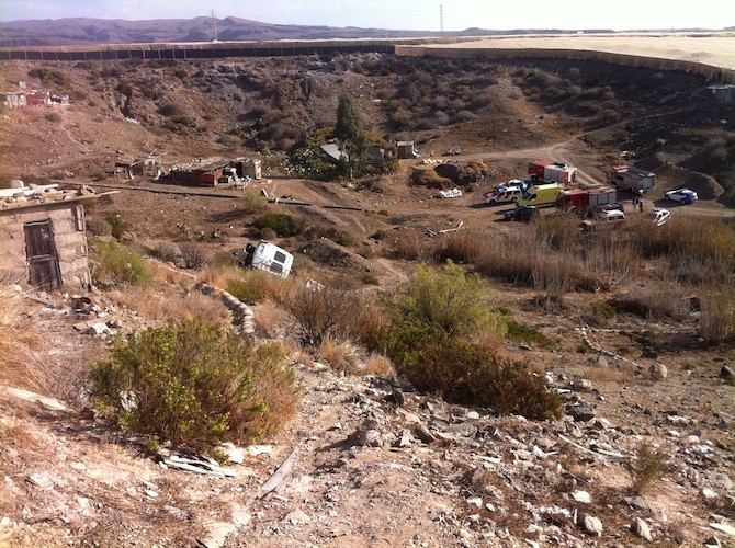 vecinos, que vieron el incidente, pudieran hacer nada para detenerla.El trabajador municipal, después de un trayecto de unos 50 metros y de destrozar un cuarto trastero, terminó malherido en el barranco, donde recibió inicialmente la asistencia de los lugareños, quienes alertaron al Centro Coordinador de Emergencias y Seguridad (CECOES) del Gobierno de Canarias