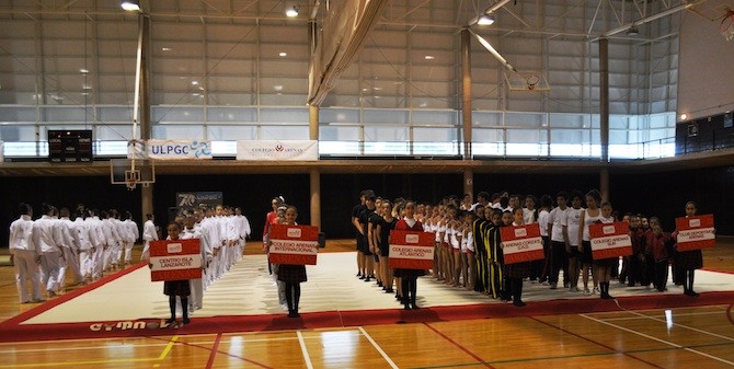 Las exhibiciones ofrecidas por los equipos del Colegio Arenas, Club Deportivo Arenas, Colegio Arenas Sur, Club Corza`s Maspalomas, Colegio Arenas Internacional y Centro Isla de Lanzarote, se iban sucediendo bajo la atenta mirada del público asistente y de los componentes de la Mesa Presidencial en la que estaban los directivos de los Colegios Arenas, junto al Director General de los Centros Arenas Alberto Rodríguez, los Consejeros Delegados Bernardo Rodríguez y Albero Ojeda; y la Presidenta de la Federación Canaria de Gimnasia Manuela Teno.