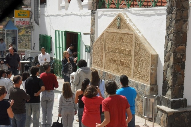 Los vecinos del pequeño pueblo de Ayagaures se reunieron el sábado en su plaza para vivir como un hecho histórico el descubrimiento de un mural de piedra dedicado al pino de Pilancones y la apertura de su primera biblioteca -después de tantos años- en la sede de la asociación vecinal.
