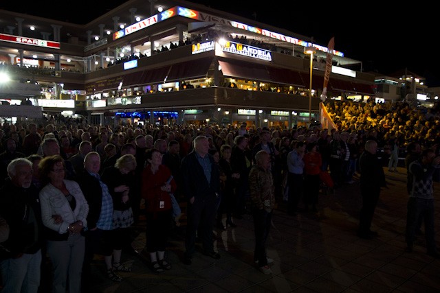 El escenario POP del Carnaval Internacional de Maspalomas fue inaugurado durante la noche de este viernes con el tradicional encendido