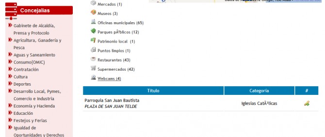 Según el Ayuntamiento, no sé si también es Excelentísimo, sólo hay una iglesia católica y once iglesias en general, de todas las confesiones religiosas. En otros tiempos se decía que se trataba de los duendes de la imprenta, pero hoy ya metidos en pucheros informáticos, la culpa es de los traviesos bites y bytes. De todos, menos de los que debieron revisar los contenidos bajo su responsabilidad y, lo que es peor, que probablemente esos apartados no los haya visitado nadie que conozca el municipio, ni siquiera los curas párrocos, los parroquianos o el Sr. Obispo. Ni siquiera ha caído en la cuenta el activísimo Padre Báez, de tan fino olfato para los asuntos culturales autóctonos, y eso que éste desliz afecta a los asuntos que le ocupan en su vida personal y profesional.