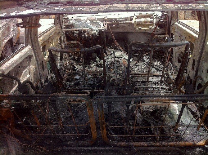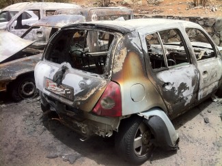 vehículos, de los cuales tres quedaron totalmente calcinados y dos muy