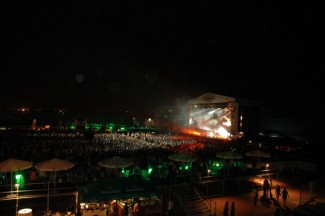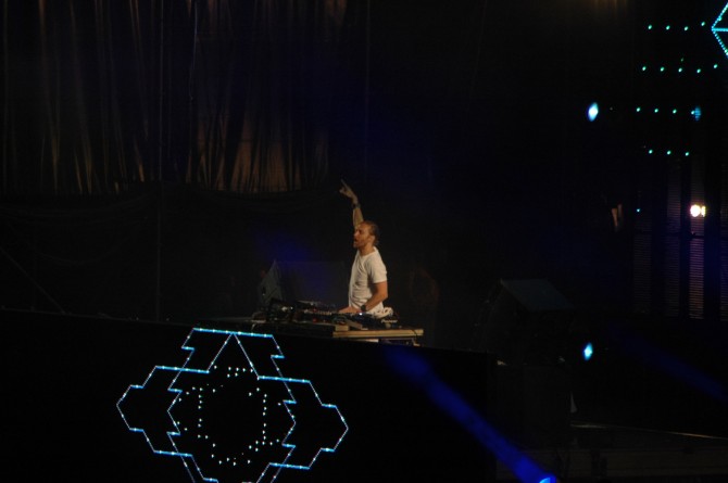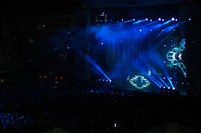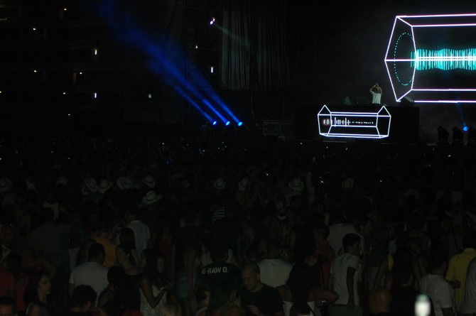 El frances de 44 años y residente de la Discoteca Pachá Ibiza hizo acto de presencia a media noche como estaba programado y abrió su show de dos horas con una introducción que precedió al conocido “Titanium”.A partir de ese momento el estadio se rindió ante el cabeza de cartel que no dejó atrás temas conocidos como The World is mine, Sexy Bitch o Money.