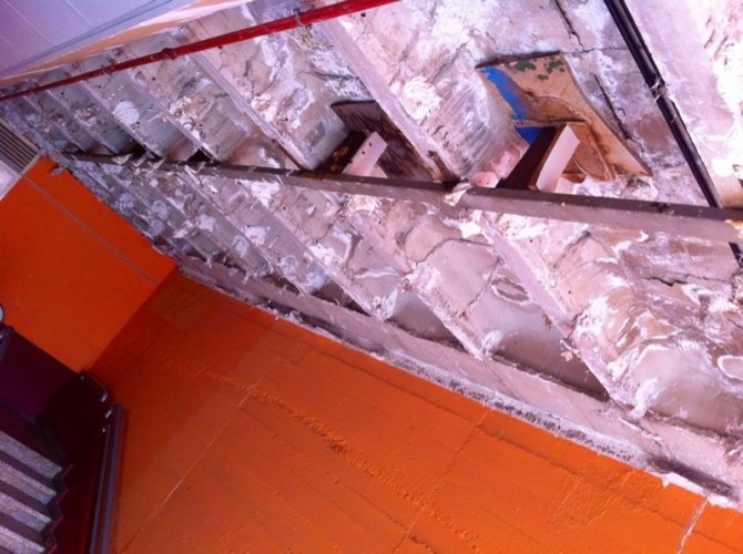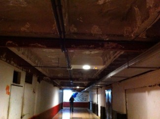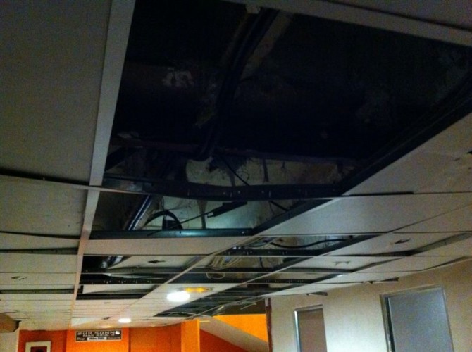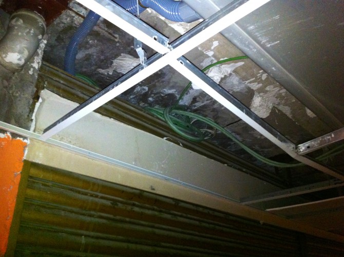 Los falsos techos de la mayoría de las plantas están caídos y, por tanto, todo el cableado a la vista, así como las instalaciones eléctricas en un estado deficiente.