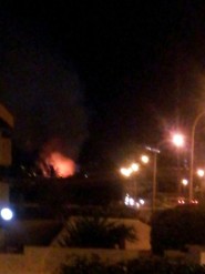 caída de varios cohetes de fuegos artificiales en la zona boscosa muy próxima al centro comercial Tropical.El fuego se declaró sobre la media noche, justo cuando se festejaba la entrada del nuevo año, momento en el que se produce la gran descarga de fuegos artificiales.