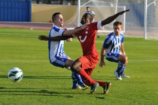 Incidencias: unos 2.000 espectadores, en su inmensa mayoría extranjeros, acudieron al Estadio Municipal de Maspalomas para ver este primer encuentro del XXVIII Torneo Internacional de Maspalomas.