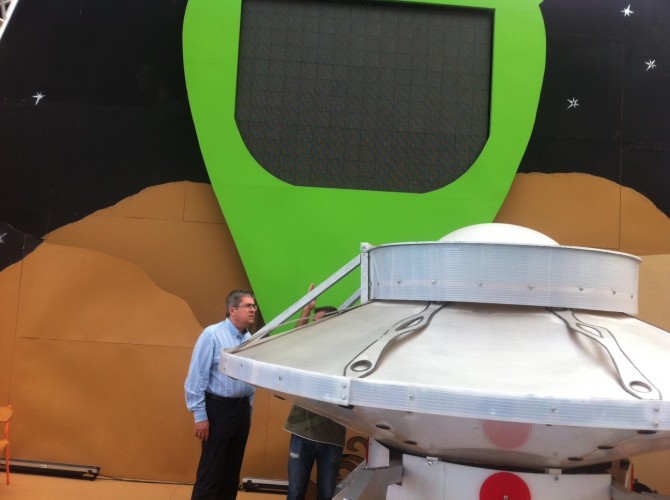 El alcalde de San Bartolomé de Tirajana, Marco Aurelio Pérez Sánchez, ha inspeccionado los últimos retoques y los motivos escénicos del escenario principal del Carnaval Internacional de Maspalomas 2013, que este año tendrá como motivo principal la plasticidad cultural y racial que ofrece el Planeta Maspalomas.