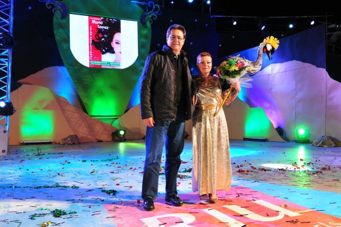 La Gran Dama recibió la banda de Mary Afonso, Gran Dama del Carnaval Internacional de Maspalomas 2012, y de la mano de la teniente de alcalde y concejal de Cultura de San Bartolomé de Tirajana, Elena Álamo, el premio de un fin de semana para dos personas a las Islas Canarias patrocinadas por Viajes Martes.