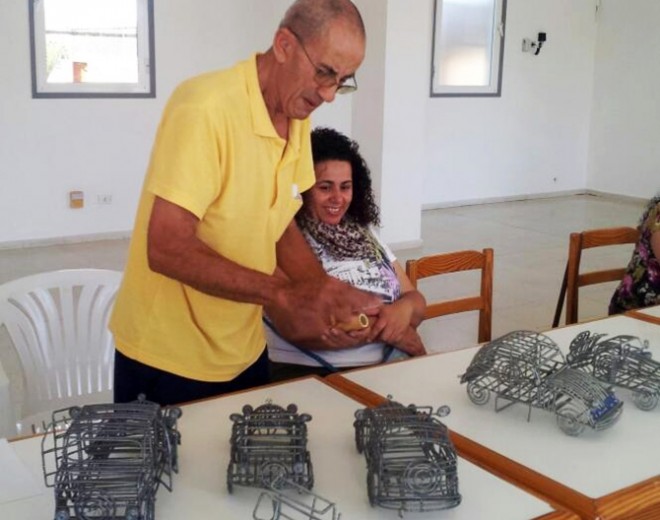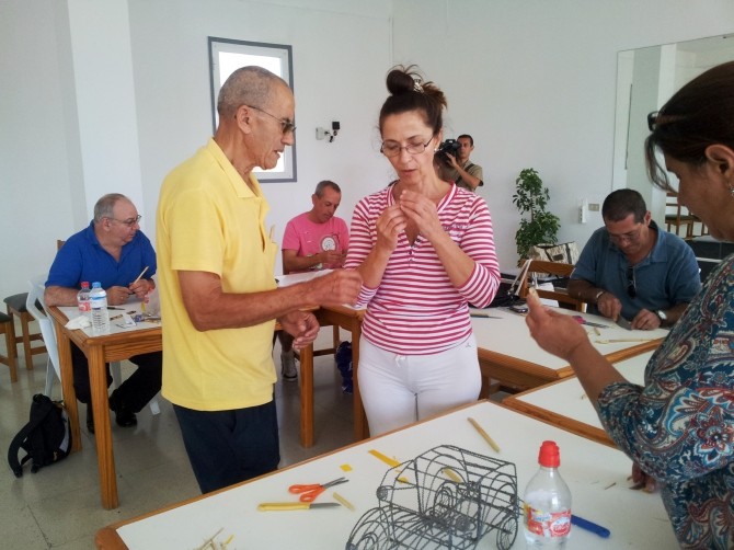 El conocido y experto malabarista del trompo y la pelota Antonio Santana Quintana imparte un taller de juguetes artesanales canarios, fomentado por el Ayuntamiento para generar autoempleo en el ámbito de la animación turística