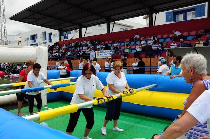 La gran amplitud y múltiples posibilidades que ofrece ese marco deportivo conformado por el estadio Eleuterio Valerón, la Piscina Municipal y la plaza adyacente fueron los motivos que condujeron a la Concejalía del Mayor que dirige la edil Araceli Armas Cruz a elegir este emplazamiento urbano para la celebración del V Encuentro Lúdico Deportivo para Mayores, que anualmente se celebra en El Tablero coincidiendo con sus fiestas patronales.