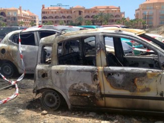 Dos de los vehículos afectados quedaron totalmente calcinados por las llamas. El Cuerpo Nacional de Policía investiga la autoría.