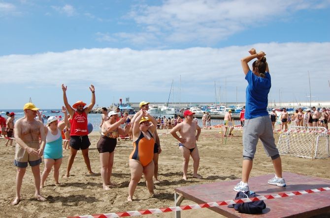El Ayuntamiento de Mogán ha preparado, un año más, un circuito que favorece la movilidad física y el espíritu de equipo con actividades como la master class de zumba, juegos de playa como el boleybol, juegos con pelotas y circuitos de obstáculos.