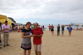 Voluntarios de Cruz Roja, Protección Civil, profesores y alumnos del IES Aguimes y el IES La Isleta se han encargado de acompañar a los participantes en cada estación en la arena, en el agua y en las actividades especiales para personas en silla de ruedas que han disfrutado de un baño gracias a las sillas anfibias.