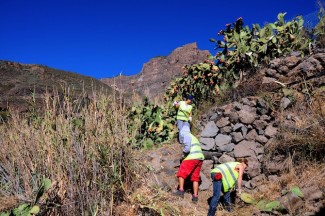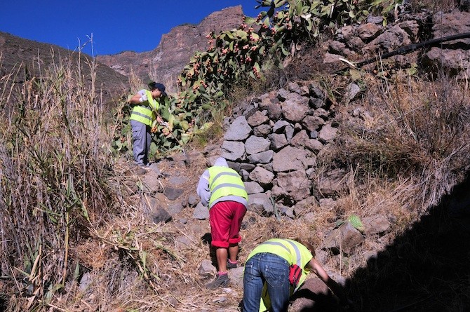 La recuperación de estos caminos en los asentamientos rurales de La Culta, Montaña de Rosiana, Risco Blanco, Lomito de Taidía o La Hoja de Arriba, entre otros, la está llevando a cabo el Ayuntamiento con trabajadores desempleados contratados al amparo del Programa Extraordinario de Empleo Social 2013, pactado por el Servicio Canario de Empleo y la Federación Canaria de Municipios.