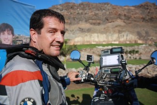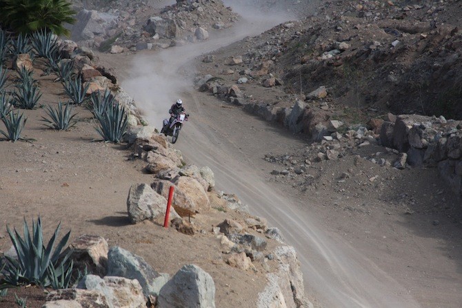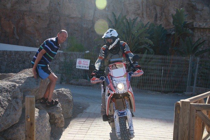 El piloto grancanario, Jorge Gómez, con la BMW G450, realizó este martes su último entrenamiento en las instalacines de Anfi Tauro antes de emprender un largo viaje por Europa, y llegar finalmente a Argentina, donde piloto y moto tomarán la salida oficial del Dakar 2014.