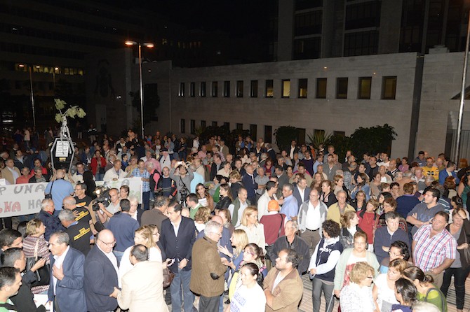 La Asociación Foro Roque Aldeano ha reunido a unas 2.000 personas, según sus cálculos, en una concentración ante la sede de la Presidencia del Gobierno canario para reivindicar financiación necesaria para concluir el primer tramo de la nueva carretera La Aldea-El Risco en 2015.