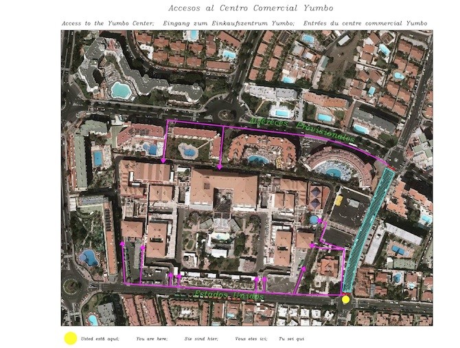 El cierre de la calle se prolongará hasta el próximo día 30 de enero sin que puedan atravesarla de camino a la Avenida Alféreces los numerosos turistas y residentes, que tan sólo pueden llegar desde la Avenida de Estados Unidos (en la parte sur del Centro Comercial Yumbo) hasta los apartamentos Los Tilos por un estrecho camino.