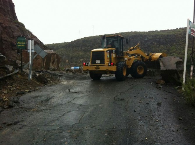 Tras la primera intervención de los servicios municipales con tres tractores, se pudieron retirar cinco de las grandes piedras, ahora se espera por maquinaria especial requerida al Cabildo de Gran Canaria y una empresa privada para retirar la mayor de todas, detalló.