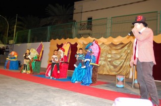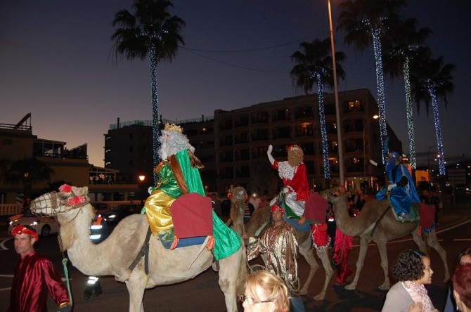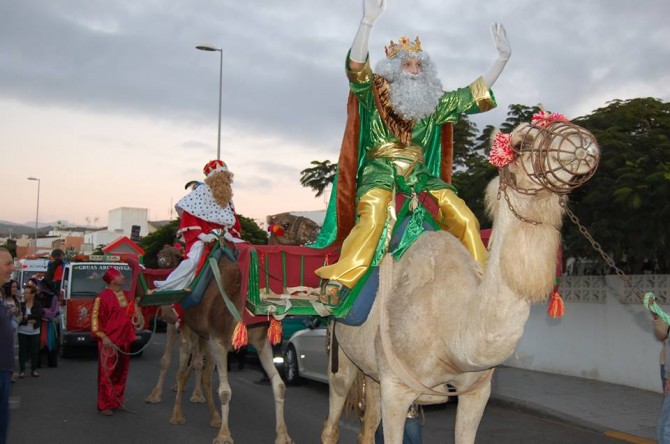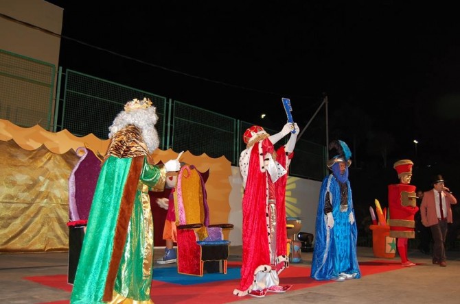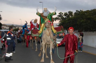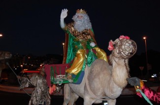 Desde las 17:30 horas sus majestades llegaron a la calle Francisco Navarro, dónde dio comienzo la cabalgata presidida por Melchor, Gaspar y Baltazar que montaron en sus dromedarios acompañados por personajes de Disney, hombres zancudos, velocípedos, un grupo de batucada, brujas carboneras que repartirán el carbón y los pajes reales que irán en una carroza cargada de regalos.