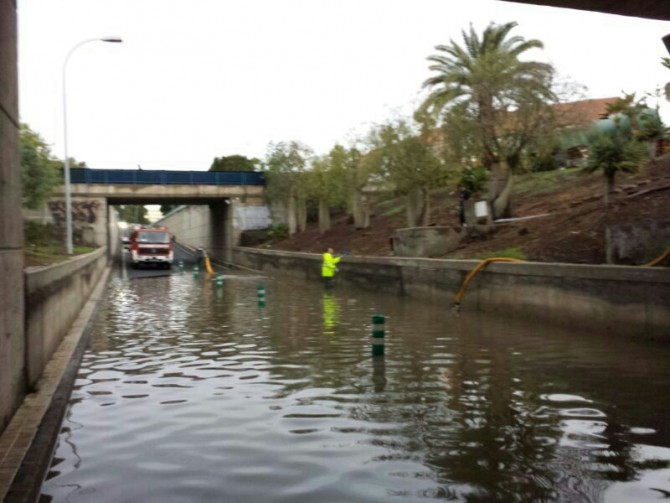 El tráfico en la zona céntrica de San Bartolomé de Tirajana se restableció a las 10.00 horas, en el tramo de carretera de la carretera GC-500 que transcurre bajo la rotonda de la Viuda de Franco, que permaneció cortado mientras los bomberos achicaban el agua.