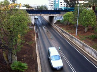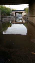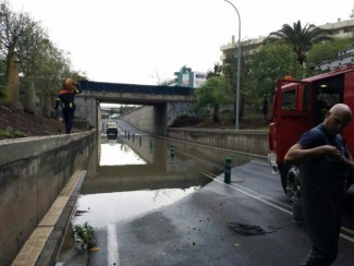 [Img #18766]La lluvias que han caído a primera hora de la mañana en el sur de Gran Canaria dejaron a su paso pequeños desprendimientos en las medianías, un descenso considerable de la temperatura y la inundación del paso a nivel de la Viuda de Franco, en San Fernando de Maspalomas.