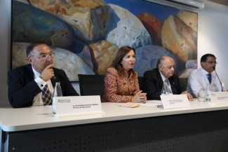 En este acto estuvo acompañada por el presidente del Grupo San Roque, Mario Rodríguez, por el director de Operaciones de Hospitales San Roque, José Manuel Baltar, y por el miembro del departamento de Oncología Radioterápica, Julio César Velásquez.