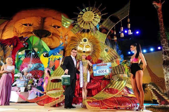 Carolina Cámara López con la fantasía “Sacrificio” del diseñador David Hernández Páez fue proclamada Primera Dama de Honor, en representación del Hotel Parque Tropical.