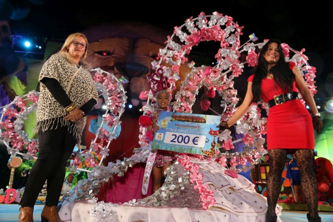 El Carnaval de Faunaval ya tiene Reina Infantil. La niña Lola Dávila Calero, de 8 años, con la fantasía “Como en un cuento llego al Carnaval”, de las diseñadoras Cale Medina y Dulce Ortega en representación de Losam Servicios y Led Siete Islas fue coronada en la tarde noche de este domingo, ante una plaza del Centro Comercial Yumbo abarrotada de familias.