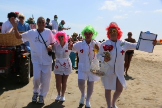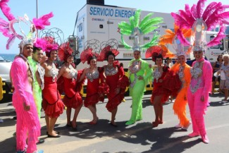 Durante el trayecto fue necesaria la monitorización de la protagonista del Carnaval, la ingestión de líquidos, control de temperatura corporal a través de continuos baños en la orilla de la Playa de Maspalomas, en la zona de la punta conocida como “Cañá la Penca” y en la Playa del Inglés.