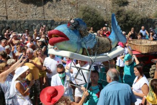 El contacto con el litoral, el agua salada y la temperatura más fresca durante los baños estabilizaron la sardina hasta llegar al Anexo II, donde fue acompañada por la Batucada de San Fernando y la Compara Baracoa (segundo premio de Vestuario en el Carnaval de Las Palmas de Gran Canaria) hasta el quirófano de Faunaguiri.
