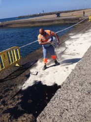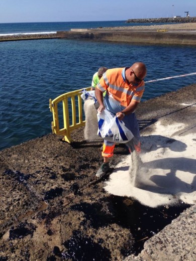 Los operarios del servicio municipal de limpieza del Ayuntamiento de San Bartolomé de Tirajana han culminado la retirada de los restos del vertido de fuel que obligó a cerrar al baño con carácter cautelar, aunque aún queda pendiente parte de las piscinas naturales de Castillo del Romeral con productos específicos.