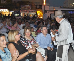 También tuvo recuerdos el pregonero para el boom económico de El Tablero como zona productora de tomates; para la desaparición del molino de aspas y su sustitución por uno eléctrico, y para La Sociedad de Pedro Vega Pestana, dedicada a desfile de variedades, proyecciones de cine y bailes; y para “la primera tienda de comestibles de Maspalomas en manos de Don Diego Santana Santana, que con su hijo Antonio y su nuera Carmela Sánchez se convirtió luego en tienda del reparto de los tiempos de Franco”.