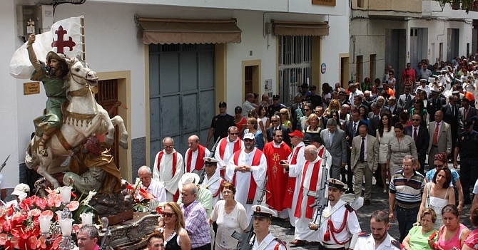 La misa en honor del Apóstol se inició puntual a las 12 del mediodía, cantada por 23 componentes del coro de Maspalomas bajo la dirección del pianista Alberto Brazuelo. La oficiaron 9 sacerdotes de distintos puntos de la Isla presididos por el párroco de San Rafael Arcángel de Vecindario, Antonio Juan López González, que centró su homilía en “los patrones y guías que nos dejó Santiago Apóstol para vivir como cristianos”.