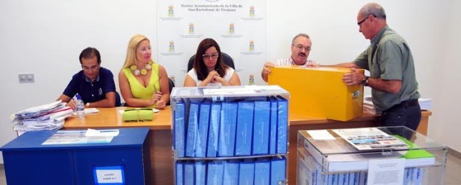 Los proyectos técnicos sobre los servicios se presentaron por parte de los licitadores en numerosos tomos encuadernados dentro de grandes cajas precintadas que se fueron abriendo por turno y comprobándose una a una.
