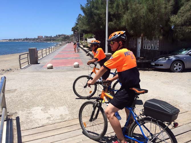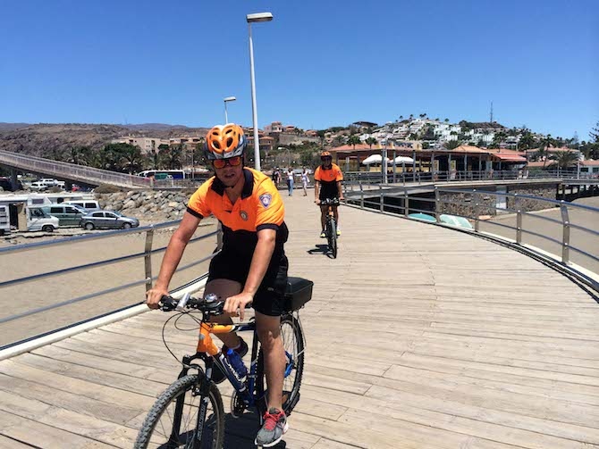 Este nuevo equipo de vigilancia costera lo conforman cuatro unidades de voluntarios de Protección Civil. Una de ellas presta sus servicios en bicicletas a lo largo de los paseos de San Agustín y El Faro-Meloneras, y otra, con dos vigilantes motorizados, cubre el litoral terrestre entre Castillo del Romeral y El Pajar.