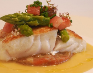 "Es un buen ejemplo de cómo trato de actualizar el recetario canario. El cherne lo servía fresco, pero sobre una crema de cherne salado, elaborado tipo sancocho, y guarnecido con una salsa de mojo rojo. Un plato humilde, supersencillo, pero buenísimo", defiende.