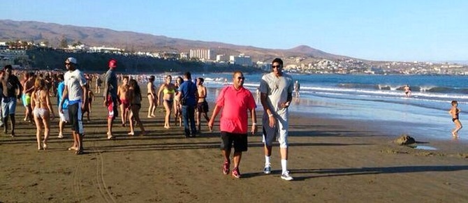 A los jugadores del Dream Team se les ha podido ver desde este sábado en las calles y playas del sur de la Isla, donde incluso han tenido momentos para jugar e interactuar con los bañistas, ante los que no pasaban desapercibidos por su gran estatura. El equipo tiene sus entrenamientos oficiales en el Pabellón de El Tablero de Maspalomas, donde sí lo hace a puerta cerrada.