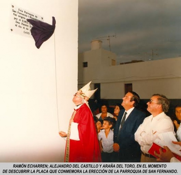 En la ceremonia de erección canónica de la Parroquia de Maspalomas, bajo la advocación de San Fernando, siendo párroco de San Fernando el Rvdo. Don Antonio Berriel y que tiene lugar el 15 de julio de 1982, Monseñor Echarren lo justificaba de la siguiente manera: “La vida comunitaria de hoy, se ve dificultada por la aglomeración humana y la superficialidad de la vida moderna. De ahí la necesidad de crear comunidades parroquiales con menos número de fieles, que faciliten el conocimiento y el amor mutuo entre aquellos que se confiesan discípulos de Cristo”.