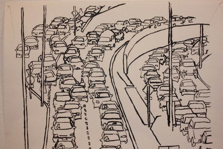 Ese trabajo lo refrendan por ejemplo sus 15 láminas de la serie ‘Tránsito’, donde el concepto visual del conjunto posibilita idealizar y oír las pisadas de los transeúntes sobre el paso de peatones, o incluso las órdenes de los gendarmes y el pulular de las sirenas de las ambulancias vinculadas a los accidentes de tráfico.