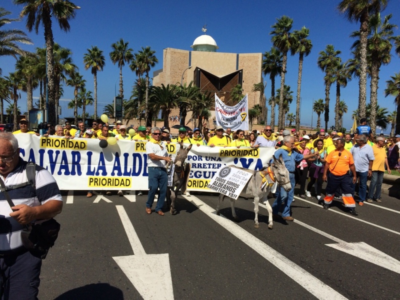 Miles de grancanarios se han unido hoy para exigir que la nueva carretera de Agaete-La Aldea sea una "prioridad" y que las instituciones públicas transfieran ya los 26 millones de euros que hacen falta para su finalización.