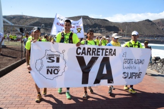 El objetivo de la marcha protesta, que ha finalizado en la Delegación del Gobierno tras más de 27 kilómetros de recorrido, es conseguir financiación para acabar la nueva carretera de La Aldea.