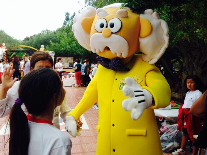 Lo más divertido, sobre todo para los más pequeños científicos del colegio, fue el espectáculo El Náufrago, en el que la se explican conceptos como la acción y reacción ( haciendo volar un cohete) o la reacción química que conduce a la creación de un "arma pegajosa y letal".