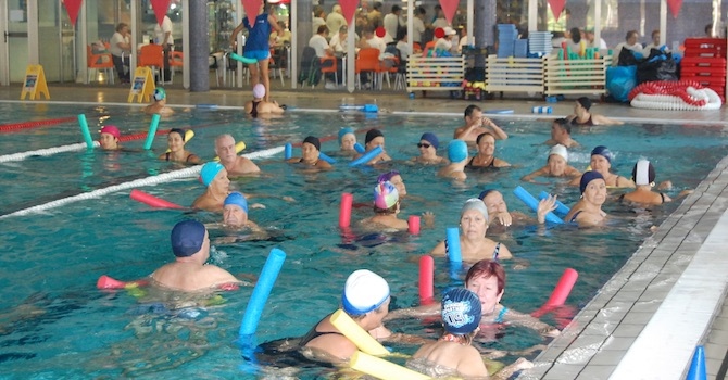 El encuentro deportivo estuvo dividido en dos espacios, uno al aire libre, en la cancha polideportiva y los exteriores del parque urbano y otro en la piscina donde además de los ejercicios de aquagym los asistentes hicieron uso de la zona termal y de hidromasajes. El circuito estaba conformado por un amplio abanico de actividades para trabajar la coordinación, el equilibrio, la fuerza muscular, realizar juegos de cooperación y oposición, juegos acuáticos y relajación.