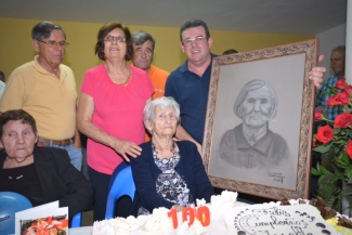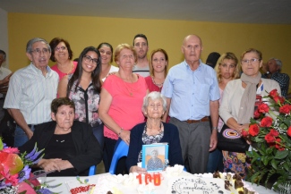 En la fiesta, organizada por los propios vecinos en las dependencias del Centro de Mayores, Josefita Valerón estuvo rodeada de familiares y amigos, que la felicitaron con un enorme pastel y un ramo de 100 rosas rojas como muestra de gratitud por su enorme carisma humano y su gran vinculación cotidiana a la vida del pueblo a lo largo de toda su trayectoria personal.
