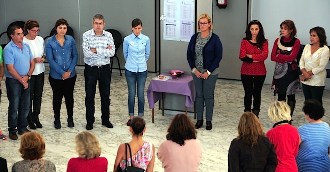 Las dependencias municipales de Asuntos Sociales del Ayuntamiento de San Bartolomé de Tirajana han sido el punto de reunión para un grupo de unas treinta personas entre hombres y mujeres, acompañados por el alcalde, Marco Aurelio Pérez y concejal del área, Amanda Cárdenes, junto  a otros ediles del grupo de Gobierno, que guardaron un minuto de silencio, en el Día Internacional por la Eliminación de la Violencia contra la mujer, celebrado este martes, 25 de noviembre.